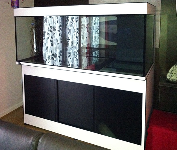 The high quality steel framed Deltec aquarium moved into the house