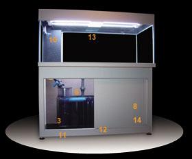 View showing the acrylic sump and skimmer.