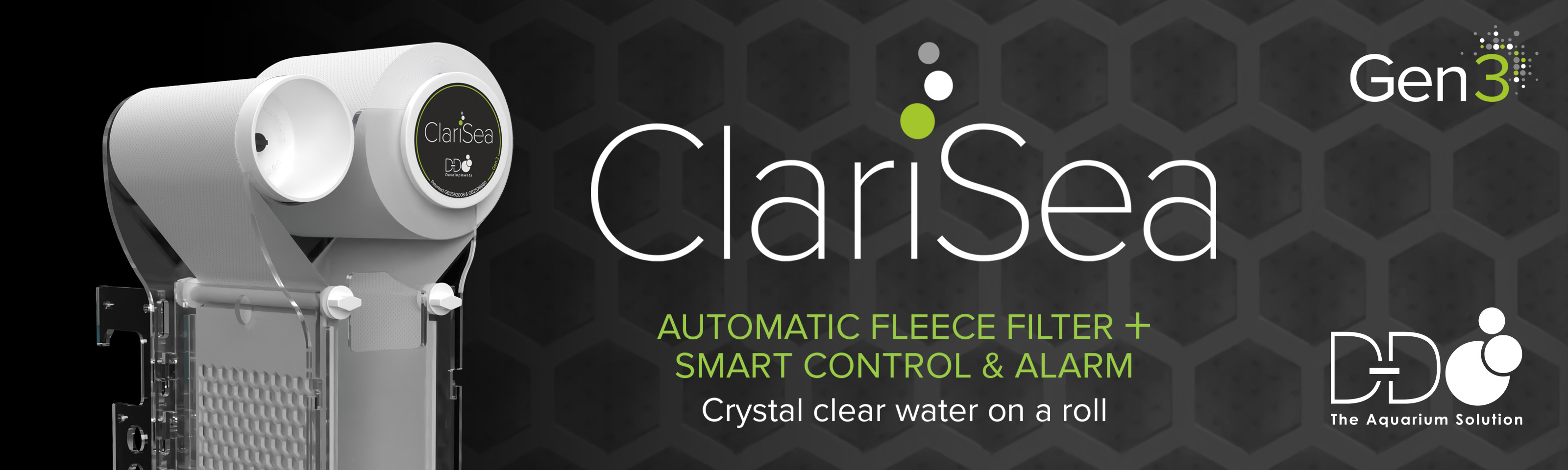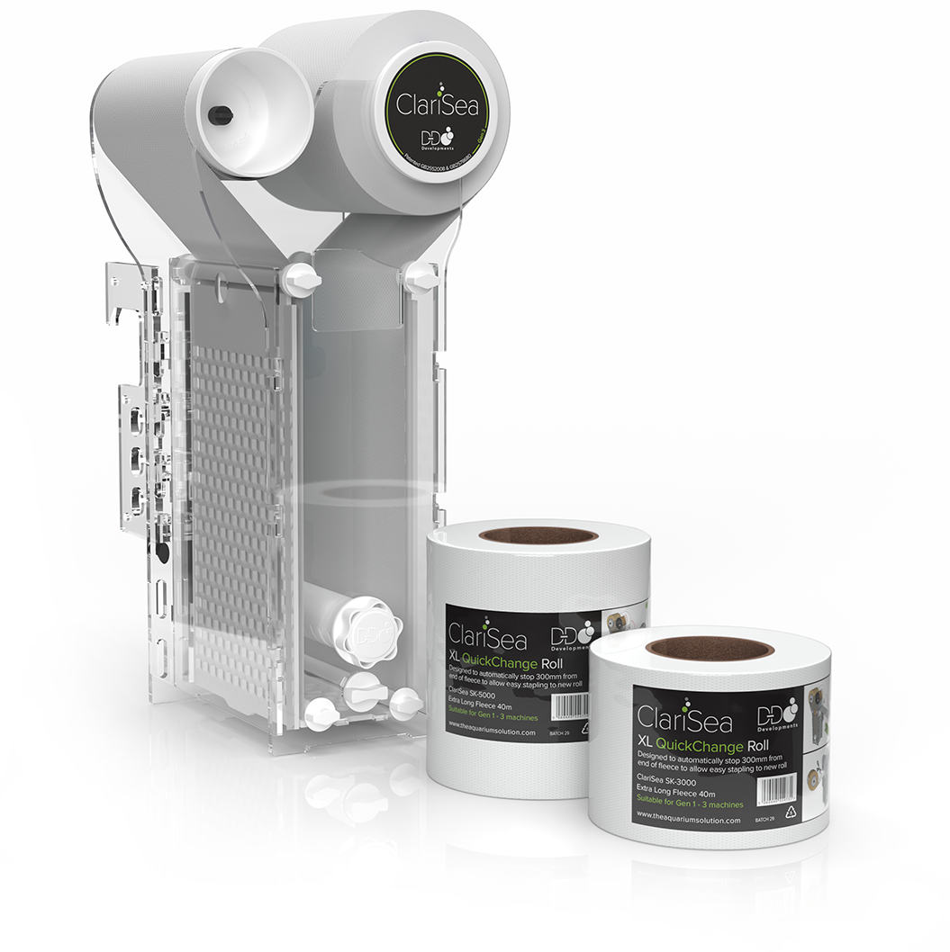 The ClariSea fleece filter is an extremely compact, patented, high efficiency water filtration system, which continuously removes suspended particles such as micro algae, detritus, food, organic waste and gravel dust from the water column. ClariSea is suitable for use in both marine and freshwater aquariums, fish-breeding and coral propagation systems.