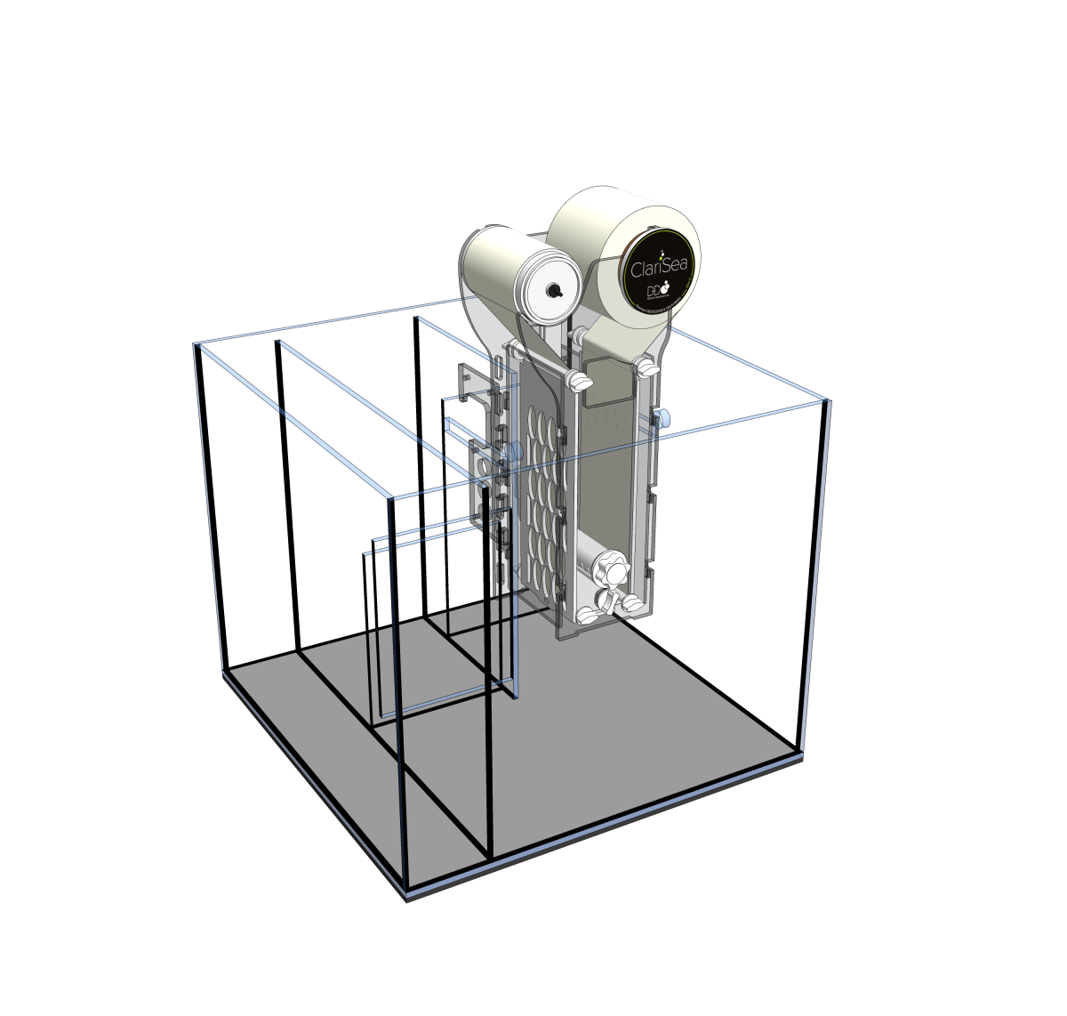 The ClariSea fleece filter is an ultra compact, patented, high efficiency water filtration system, which continuously removes suspended particles such as micro algae, detritus, food, organic waste and gravel dust from the water column to improve water quality and clarity. The ClariSea design has been continuously developed and improved over 4 years, and is suitable for use in both marine and freshwater aquariums, fish-breeding and coral propagation systems.
